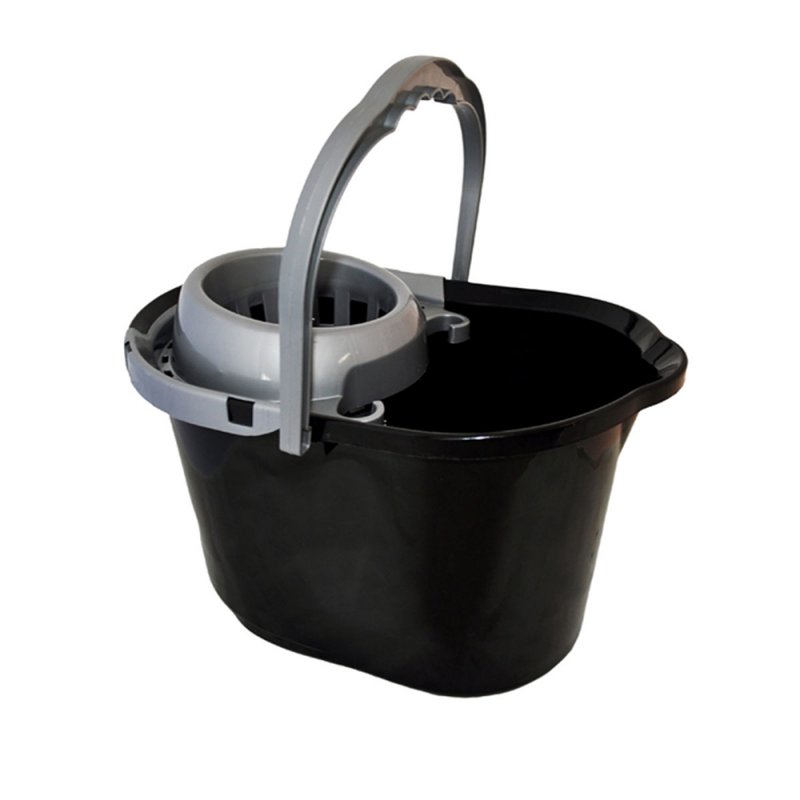 Οβάλ κουβάς σφουγγαρίσματος με στίφτη και χωρητικότητα 15 λίτρα, από ανθεκτικό πλαστικό ευρωπαϊκής προέλευσης για μεγάλη διάρκεια χρήσης.
