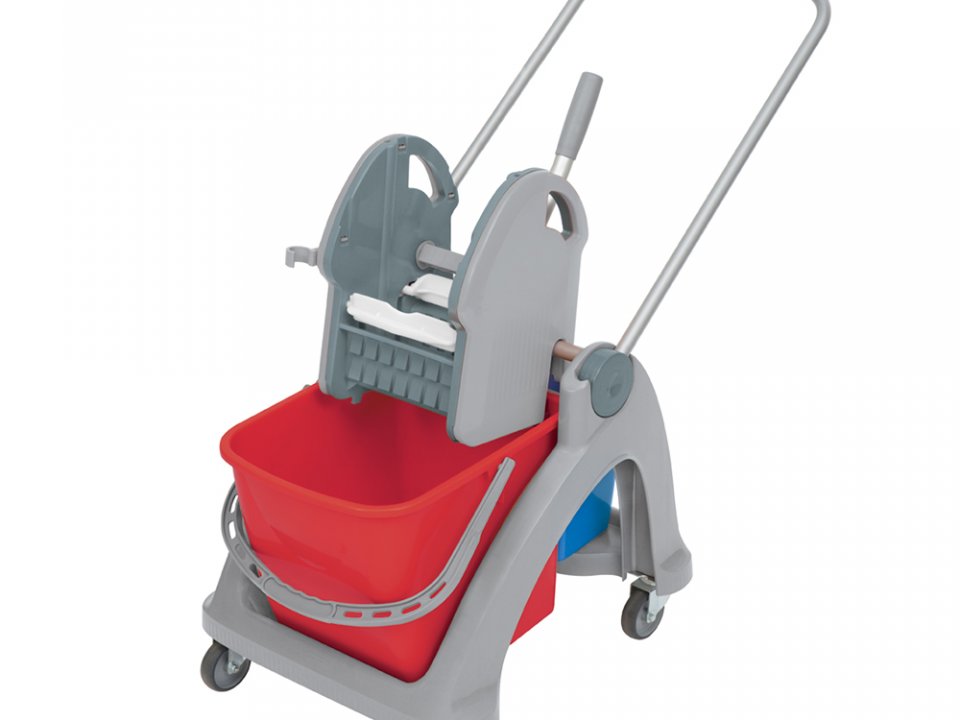 Επαγγελματικό καρότσι σφουγγαρίσματος, μεγάλης αντοχής, με μονό κουβά χωρητικότητας 25lt, πλαστική βάση, πρέσα και λαβή για εύκολο στύψιμο.